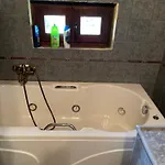 Zur Ausstattung des Badezimmers gehören auch eine Wellness-Badewanne, eine getrennte Toilette und eine Dusche. Ein Haartrockner sorgen für zusätzlichen Komfort.